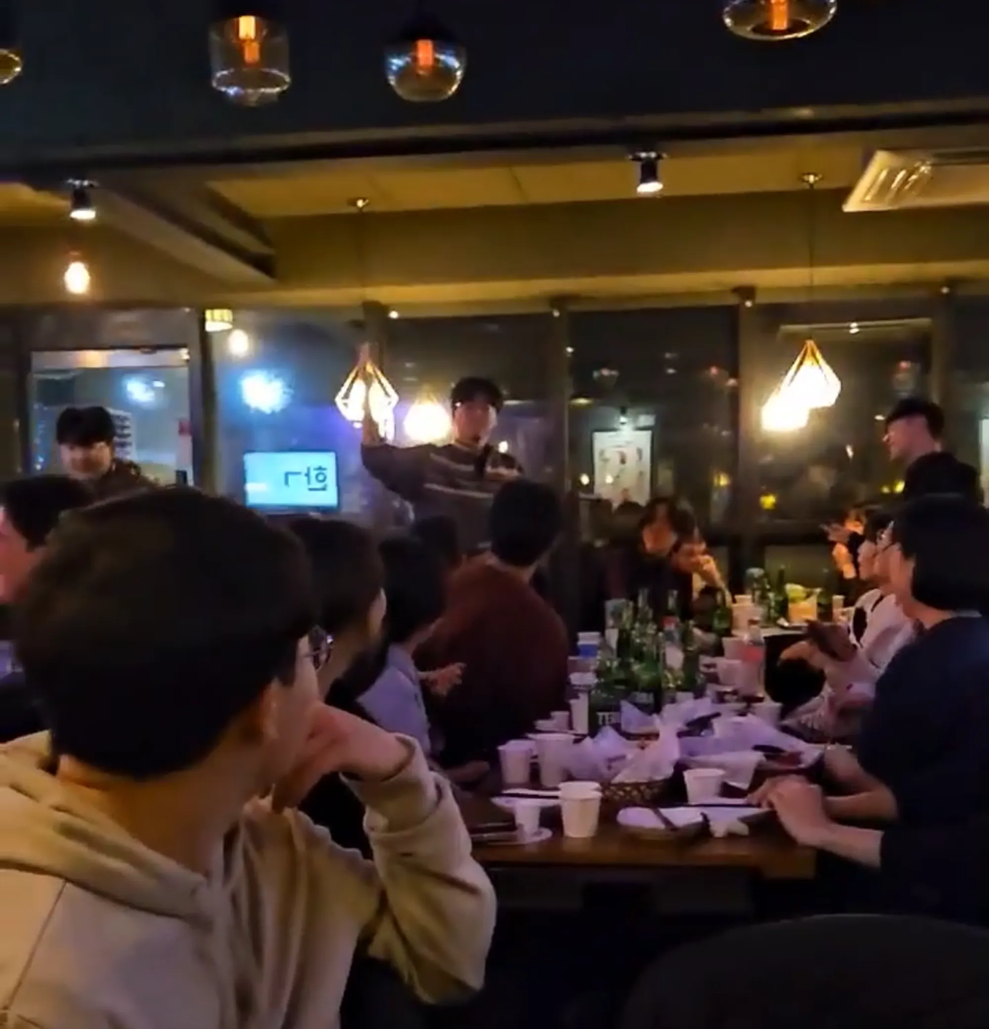 개강파티에서는 회원들이 다같이 모여 식사하고 친목을 도모하며 즐거운 시간을 갖습니다.