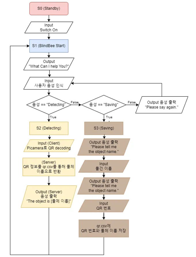 물체 구분 보조 기구인 Blind Bee를 개발하였습니다.
