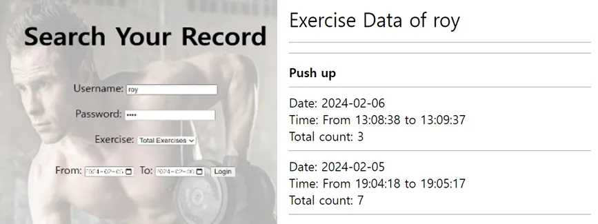 새해 목표를 ‘꾸준한 운동’으로 설정하는 사람들이 많지만 의지 부족 등으로 목표가 지속되지 않고 작심삼일로 끝나는 사람들이 많다. 이러한 사람들에게 편의성 및 동기부여를 주기 위해 라즈베리파이의 카메라 센서를 이용해 촬영하면, 실시간으로 그 개수가 웹 서버에 연동이 되어 본인의 기록을 확인할 수 있는 헬스케어 시스템을 구현한다.
